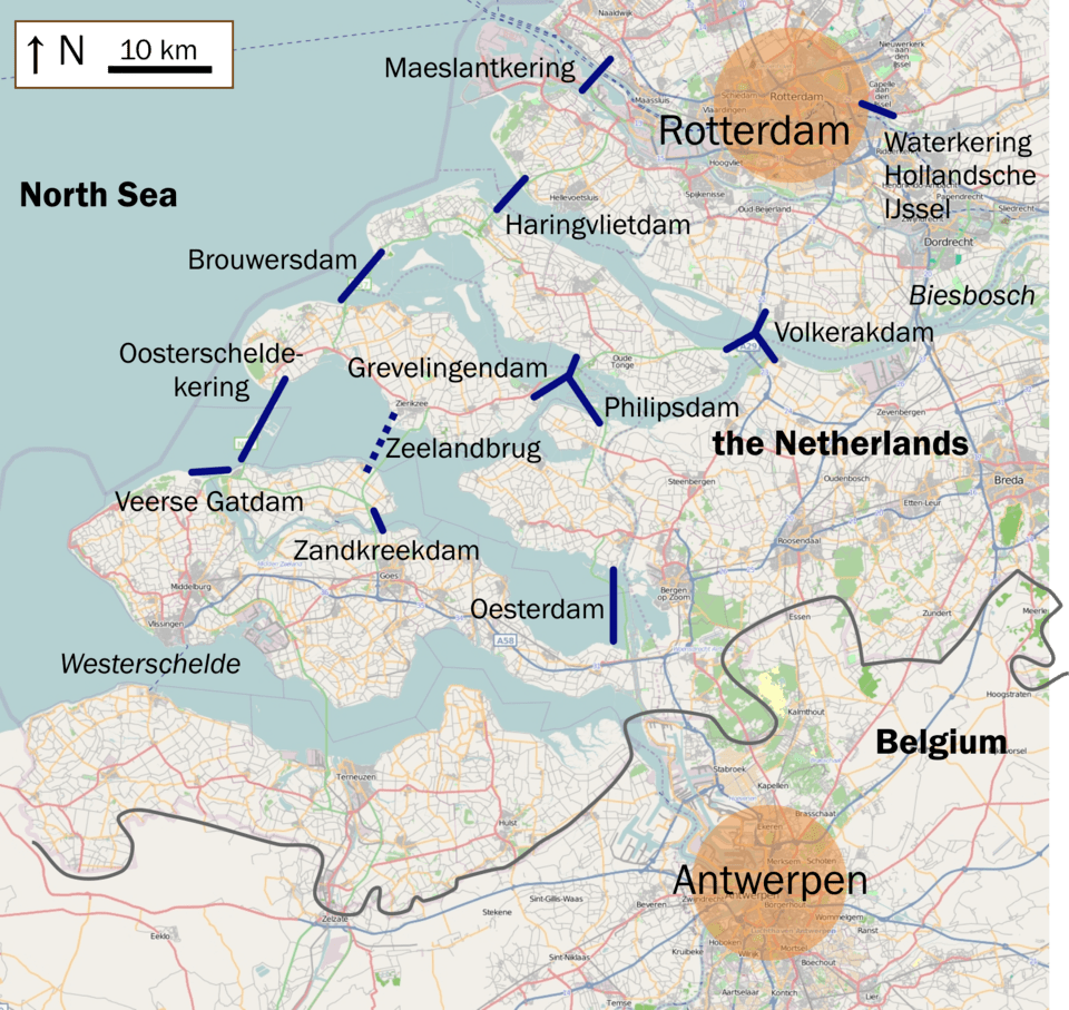 - Map of the Delta Works in Zeeland, Netherlands. Classical geographer. CC BY-SA 1.0